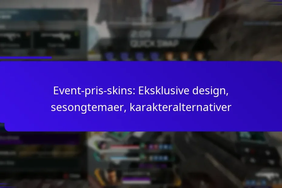 Event-pris-skins i Apex Legends er eksklusive kosmetiske design som spillere kan tjene under spesielle in-game-arrangementer. Disse skinsene forbedrer ikke bare den visuelle appellen til karakterer og våpen, men reflekterer også sesongmessige temaer og unike identiteter,… Event-pris-skins: Eksklusive design, sesongtemaer, karakteralternativer
